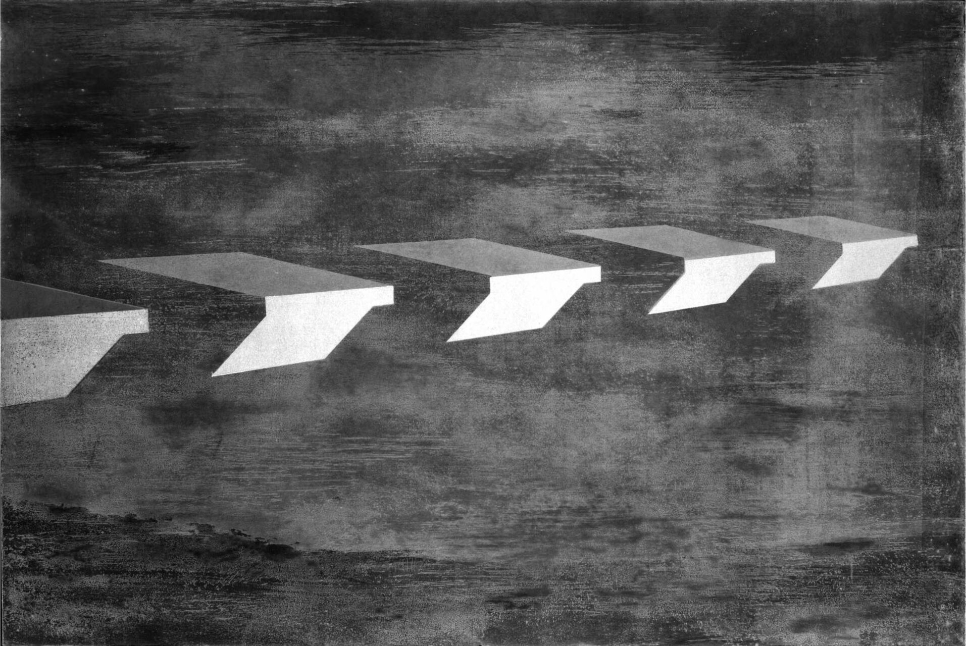 W 2022 roku wróciłam do cyklu grafik, który rozpoczęłam w 2017 roku podczas pleneru na Ukrainie. Atmosfera niepokoju i narastającego konfliktu, którą wtedy odczuwałem, była intensywna. Po powrocie stworzyłem serię grafik dekonstruujących idylliczny, spokojny pejzaż elementami kojarzącymi się z machiną wojenną.